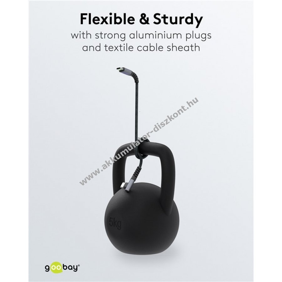 Az USB 2.0 szabvány szerinti kábel akár 60 W teljesítményű gyors töltést tesz lehetővé