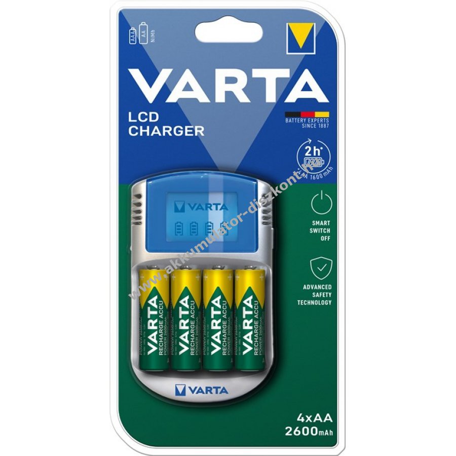 - Töltő 2 vagy 4 újratölthető AA (ceruza) vagy AAA (mikro) akkumulátorhoz - 4x AA akkumulátor 2600mAh a csomagban.