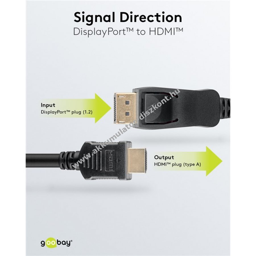 - Jelirány: DisplayPort kimenet HDMI bemenet felé
