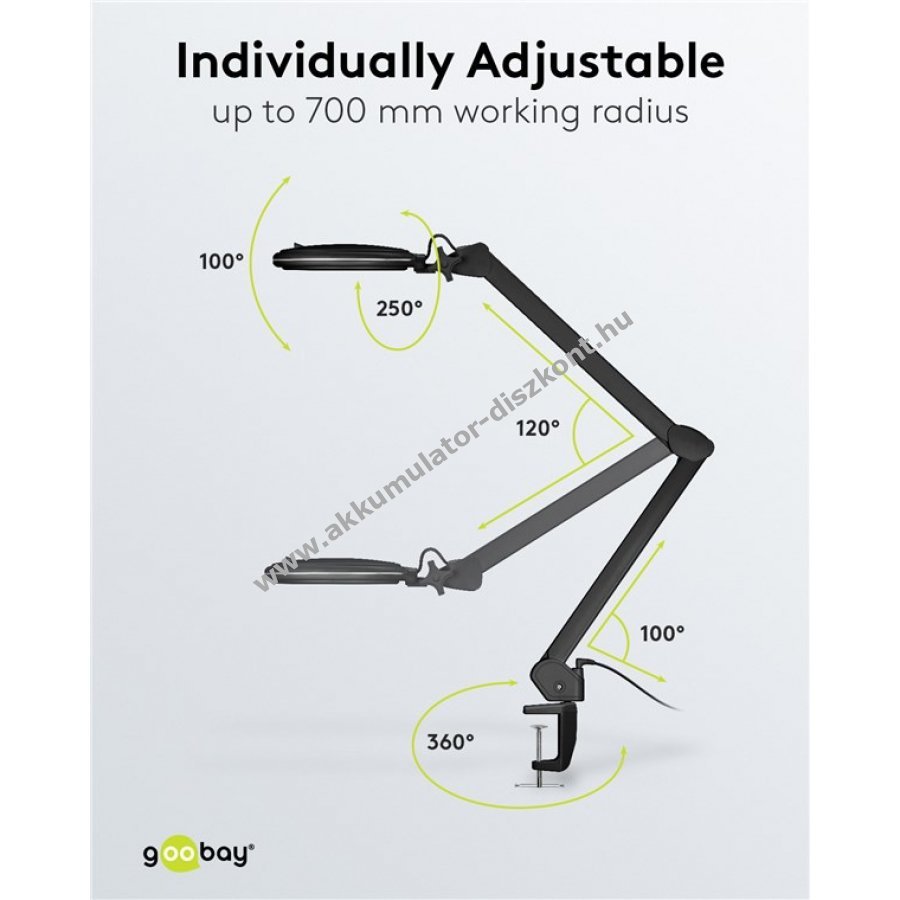 A csipeszes lámpa nagyítórésze 100°-ban dönthető és 250°-ban forgatható