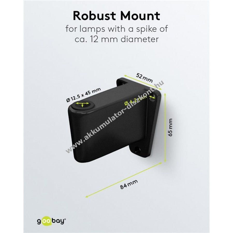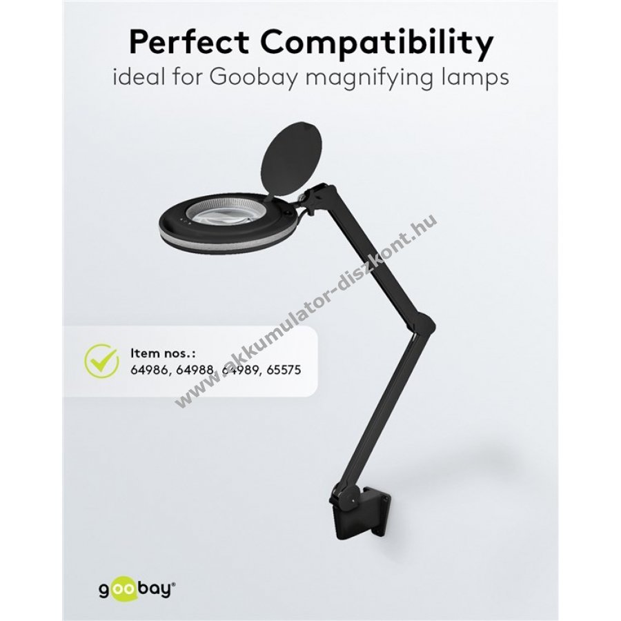 Alternatív rögzítés nagyítólámpákhoz íróasztali vagy kozmetikai lámpákhoz 12 mm átmérőjű tüske esetén 12,5 mm x 45 mm nyílásmérettel 3 előfúrt 4,2 mm átmérőjű csavarlyukkal a stabil rögzítéshez alkalmas mikrofonkarok és mikrofonállványok tartójaként is használható kompatibilis a Goobay nagyítólámpa modellekkel 65575 64986 64988 64989 mérete 84 x 52 x 65 mm hosszúság x szélesség x magasság 3 db keresztfejű csavart és 3 db faldugót tartalmaz a falra szereléshez
