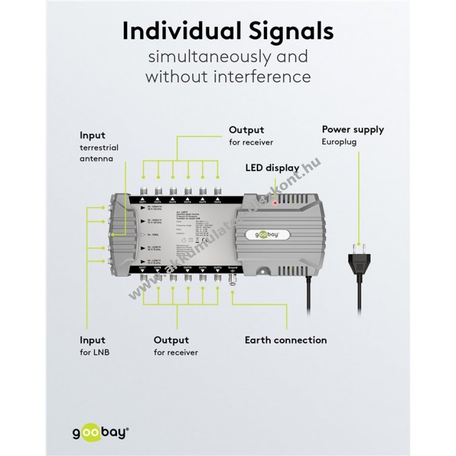A multiswitch lehetővé teszi több televízió és rádiókészülék csatlakoztatását egyetlen műholdvevő antennához ugyanabban az épületben. Minden csatlakoztatott felhasználó egyedi műsorokat fogadhat zavartalanul és egyszerre.