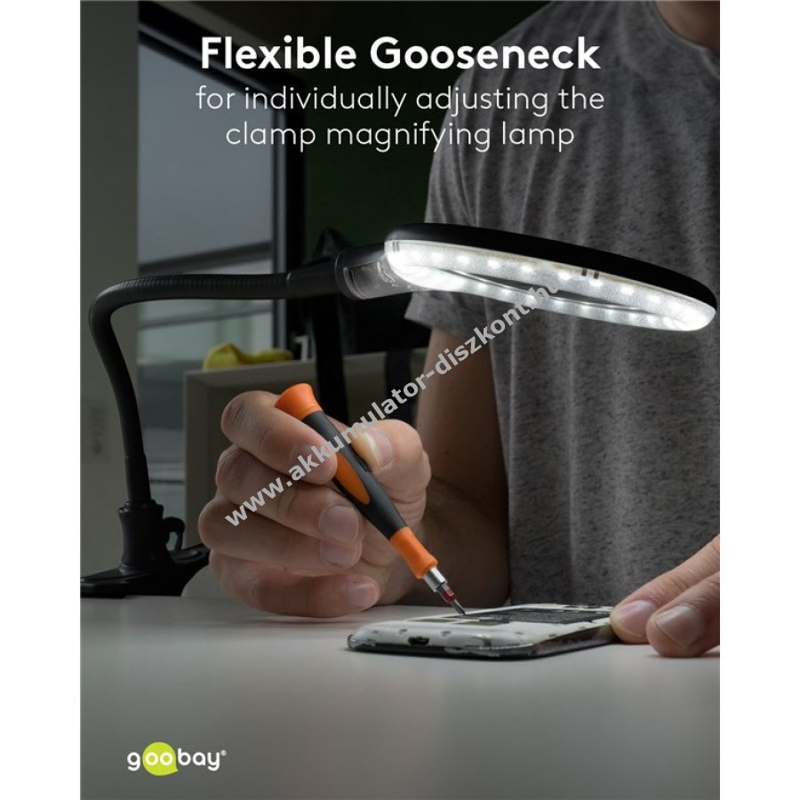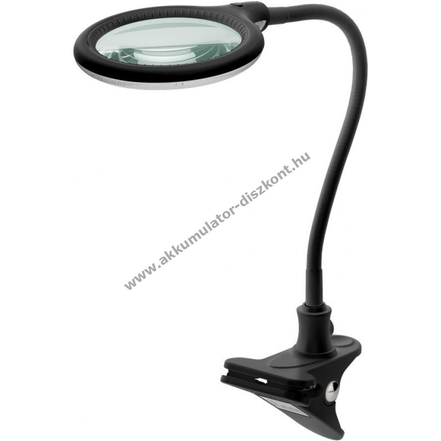 A nagyító lámpa 30 tartós nappali fehér SMD LED-del színhelyes megvilágítást biztosít. 100 mm átmérőjű üveglencse 3 dioptriával és 1,75-szeres nagyítással. A lencse gyorskioldóval szerszám nélkül cserélhető. A rugalmas nyak egyéni beállítást tesz lehetővé. Sokoldalúan használható kozmetikában, olvasáshoz vagy precíziós munkákhoz, például forrasztáshoz és barkácsoláshoz. Kiválóan alkalmas asztali nagyítónak, íróasztali vagy rajzoló lámpának csipesszel. A puha párnázat biztonságos és felületkímélő rögzítést biztosít.