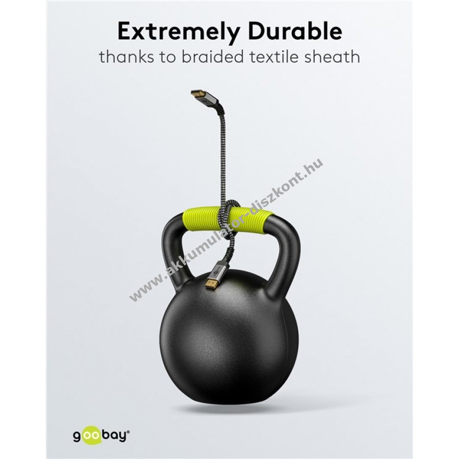 A Goobay Plus sorozat vékony fém dizájnban Sharkskin Grey színben. A DisplayPort 1.4 szabvány magas sávszélességet biztosít a sima képmegjelenítéshez szakadozás és akadozás nélkül játék közben valamint éles 8K felbontást.