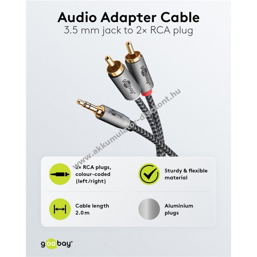 A Goobay Plus sorozat elegáns fém kivitelben Sharkskin szürke színben. A cinch kábel egyszerű megoldás kristálytiszta hang továbbítására okostelefonokról laptopokra vagy házimozi rendszerekre kényelmes film- és zenehallgatáshoz kiváló minőségben.