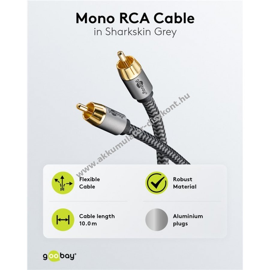 A Goobay Plus sorozat vékony fém kivitelben Sharkskin szürke színben. Kifejezetten analóg mélyhangú jelekhez subwooferekhez tervezve a mély, erőteljes basszus visszaadásához a jobb zene- és filmélményért.