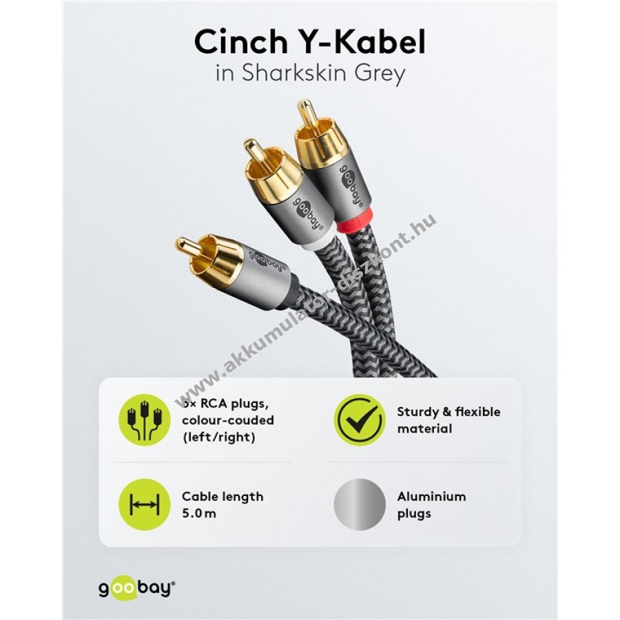 A Goobay Plus sorozat elegáns fém kivitelben Sharkskin szürke színben. Az 5 m hosszú kábel kifejezetten analóg mélyhangú jelekhez készült subwooferekhez a mély, nyomásos basszusok élményéhez a zene és filmek számára.