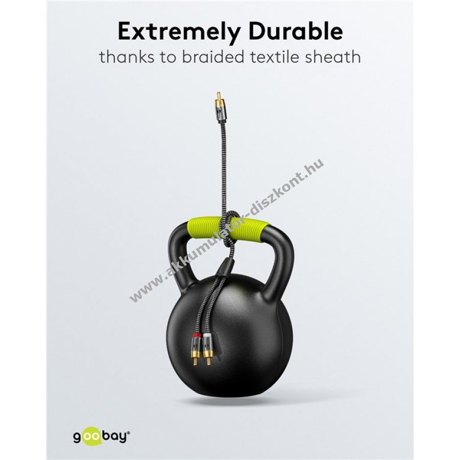 A Goobay Plus sorozat vékony elegáns fém kivitelben Sharkskin szürke színben Kifejezetten analóg mélyfrekvenciás jelek továbbítására készült subwooferekhez a mélyek gazdag és erőteljes visszaadásához lenyűgöző zenei és filmélményért Kábel HiFi eszközök csatlakoztatásához például subwoofer, erősítő, TV vagy házimozi rendszerek esetén Cinch csatlakozóval Tervezve 100 Hz-ig terjedő frekvenciákhoz és a subwoofer hangjának optimalizálásához 10 m hosszúság lehetővé teszi a subwoofer kényelmes elhelyezését a helyiség ideális pontján Rugalmas prémium kábel vékony fém csatlakozókkal hajlításvédővel és színben harmonizáló textilkábellel Fonott textilborítás kellemes tapintású és kíméli az érzékeny felületeket Aranyozott Cinch csatlakozók megakadályozzák a korróziót és különösen tartósak