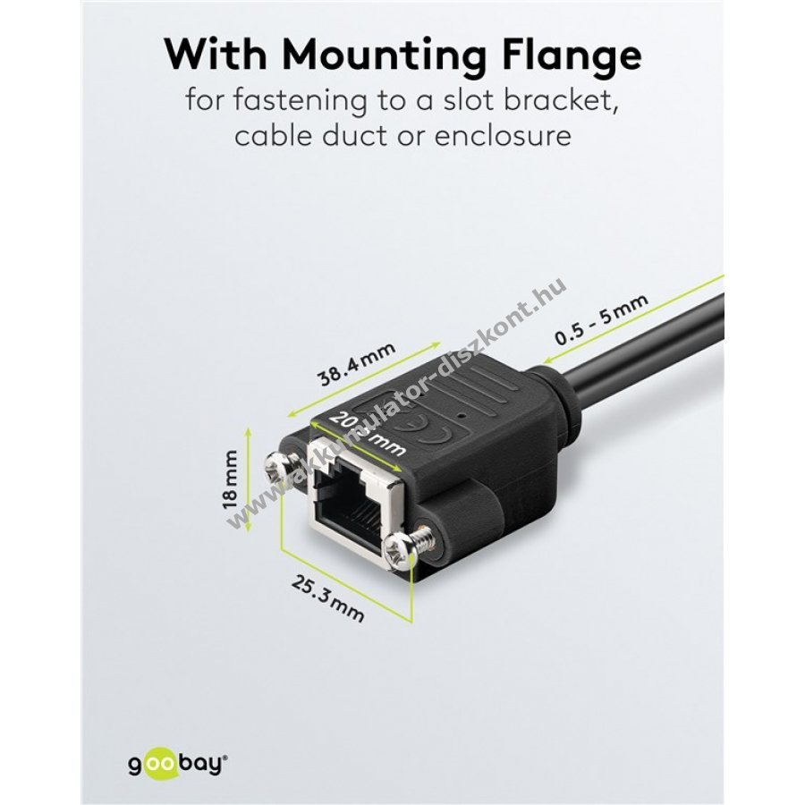 A kábel 25 mm-es furattávolságú szerelőflansszal szerelt, így könnyen rögzíthető például slotlemezhez vagy kábelcsatornához.
