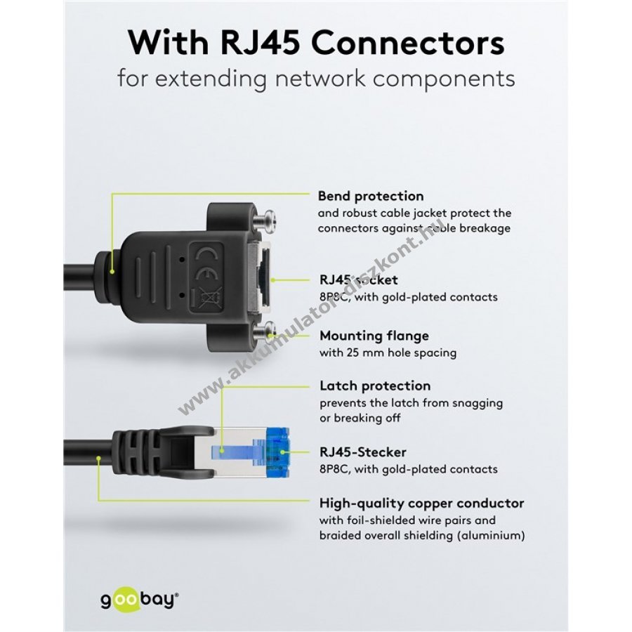 Goobay CAT 6A hálózati hosszabbító kábel S/FTP 2m fekete