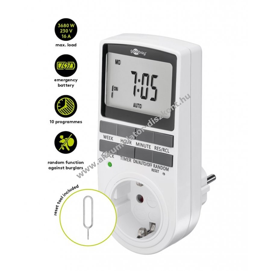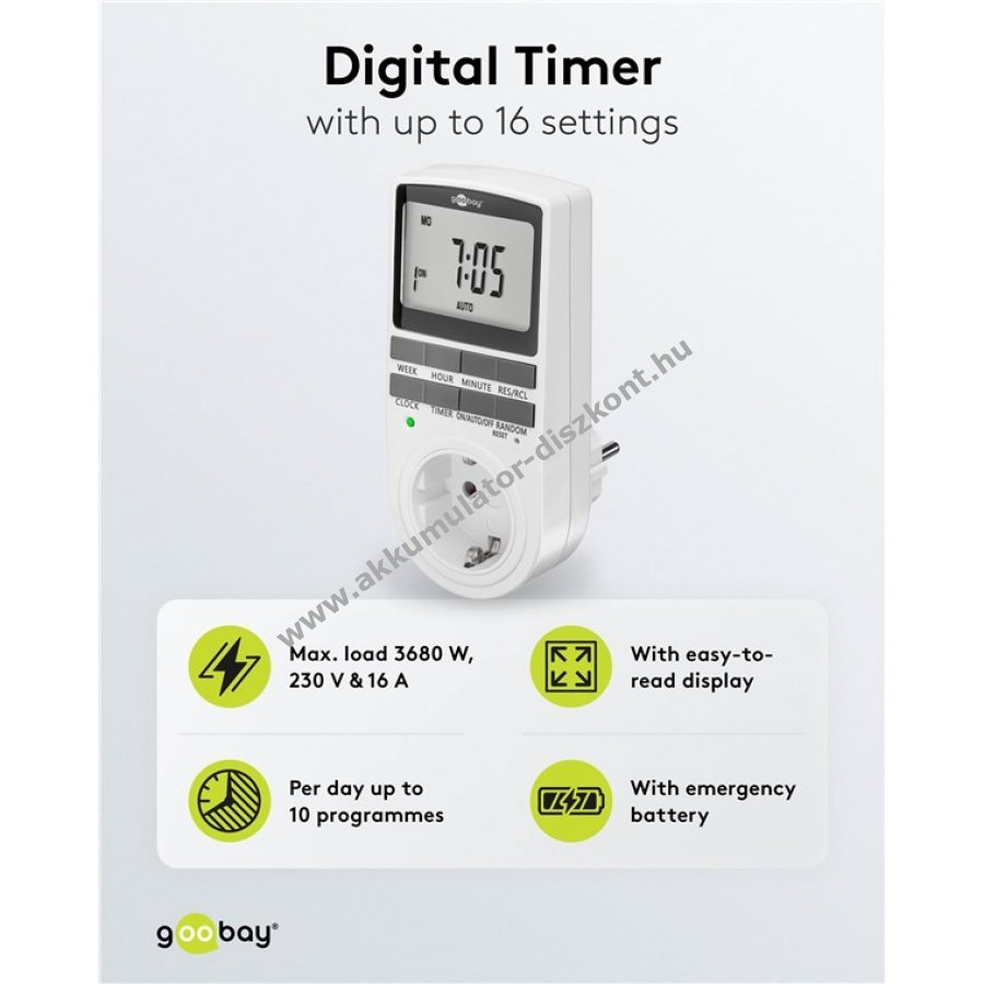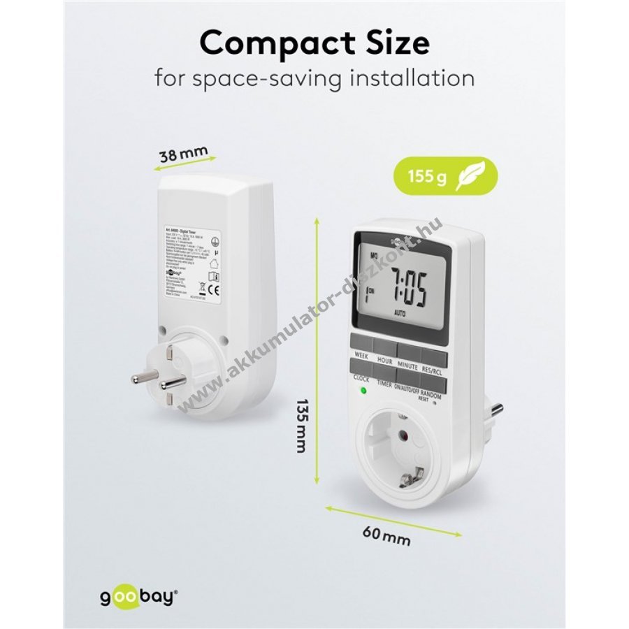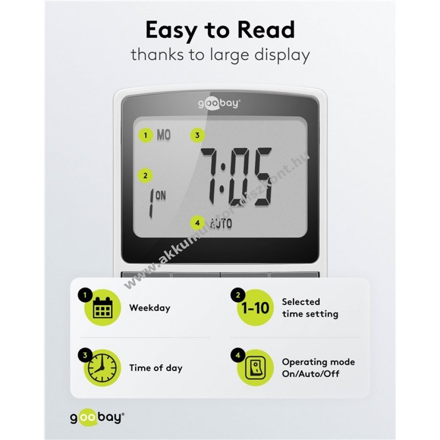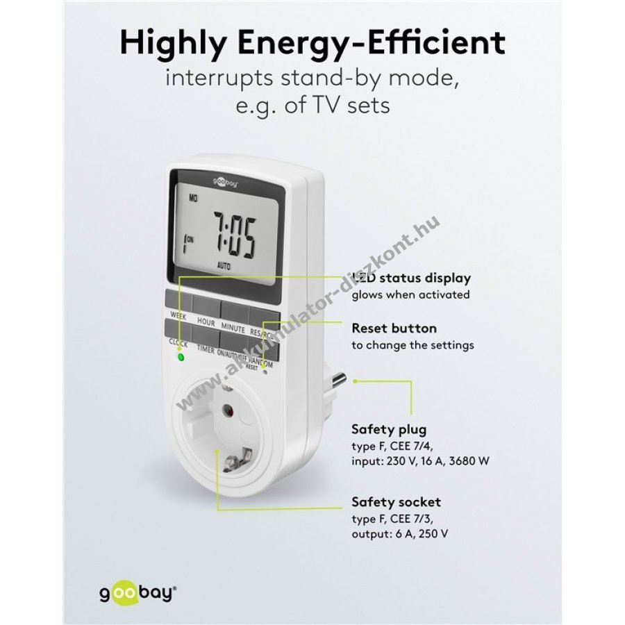 Automatizálja otthonát a Goobay rugalmas digitális időkapcsolójával amely kényelmesen kapcsolja be és ki a routert fürdőszobai fűtést növénynevelő lámpákat terráriumokat vagy kültéri világítást.