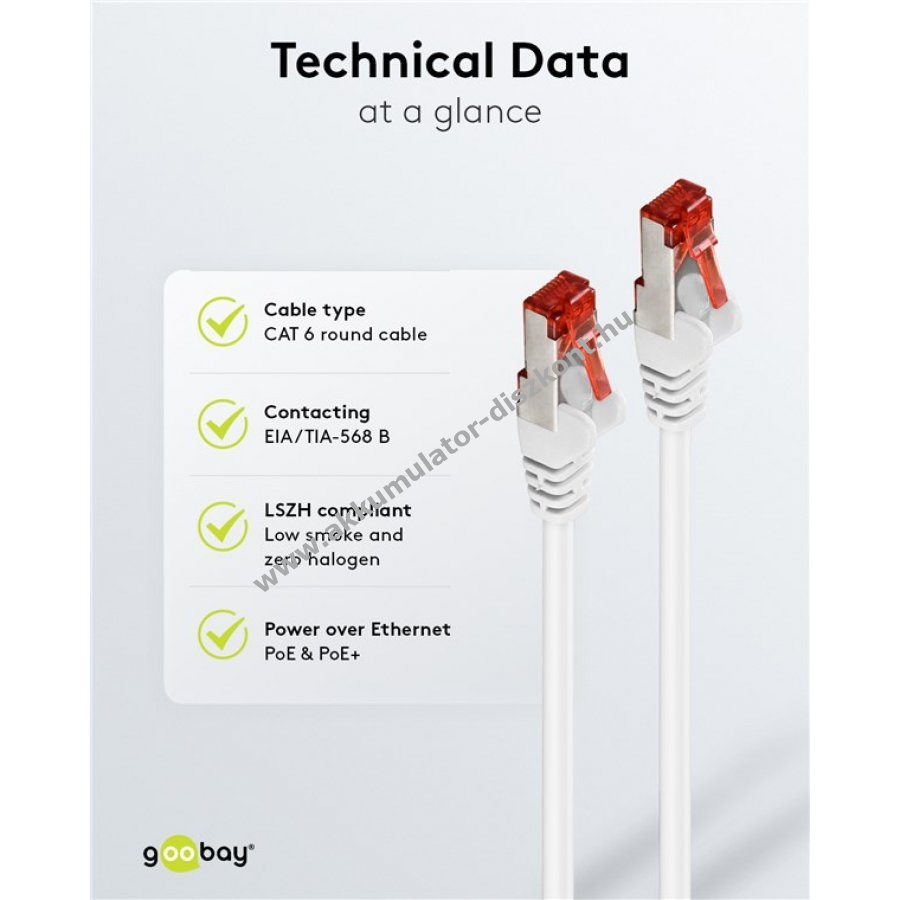CAT-6 kompatibilis 10 Gigabit Ethernethez 10BASE-T, 100BASE-TX, 1000BASE-T és 10/100/1000/10000 Mbit/s sebességekhez.