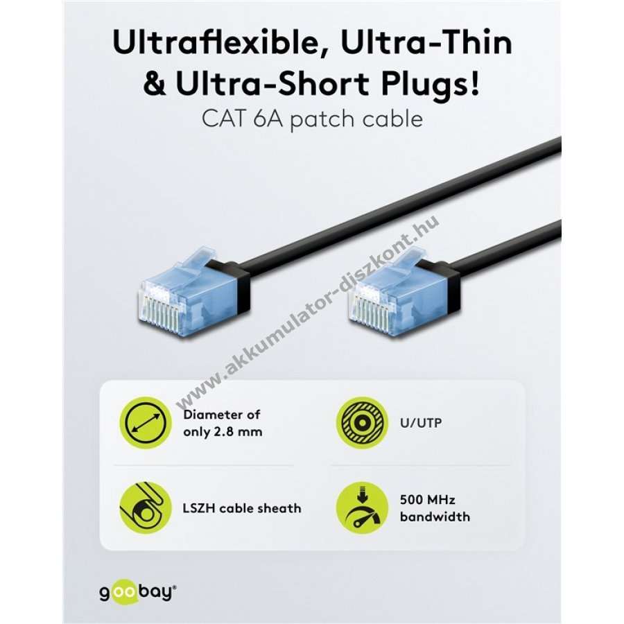 Kiválóan vékony CAT 6A LAN kábel extrarövid RJ45 csatlakozókkal a szerver szekrények és patchpanelek kábelterhelésének csökkentésére és jobb légáramlás érdekében.