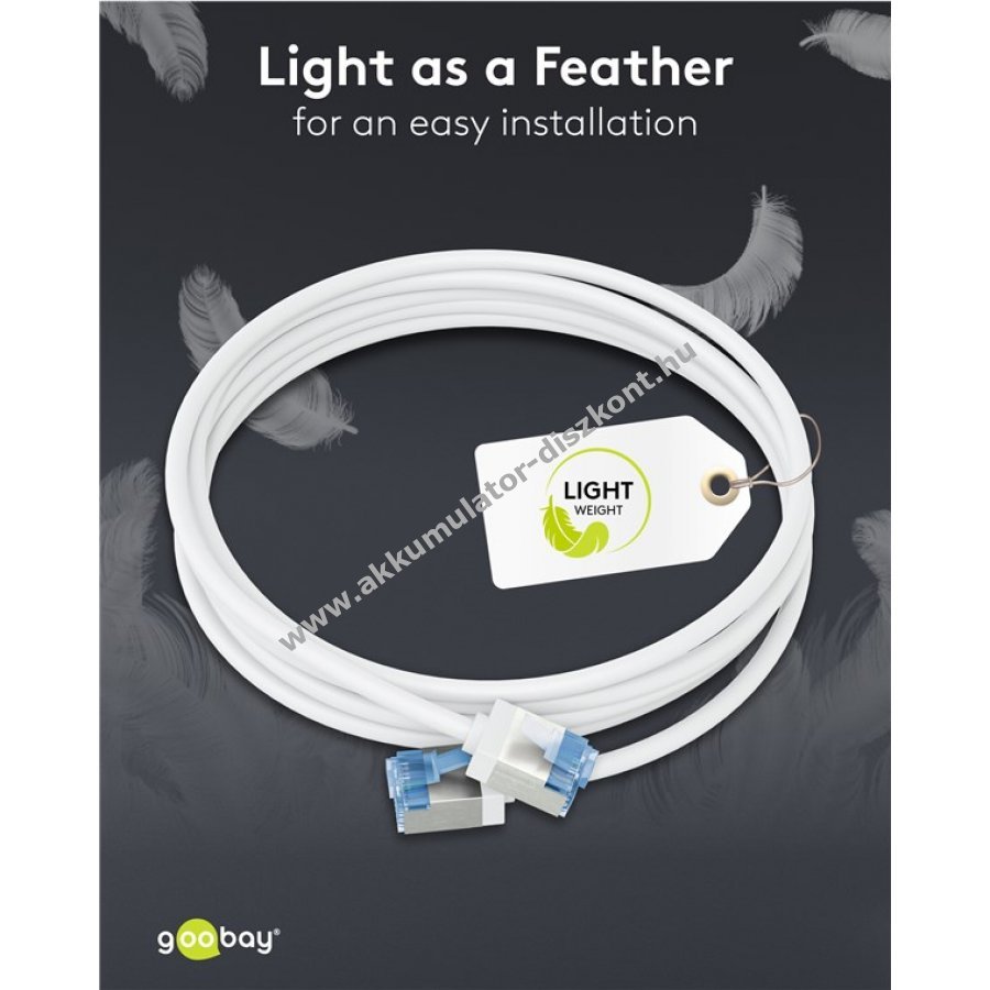 AWG 32 szabványú vezeték és 3,8 mm átmérő mellett is teljesítményben megfelel a szabványos CAT kábeleknek.