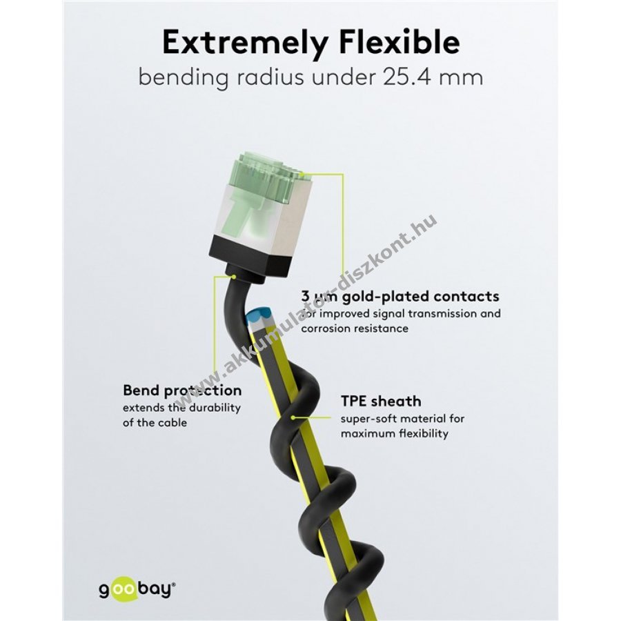 Külön kategória a Goobay ultravékony CAT 8.1 patchkábel extrakurta RJ45 csatlakozókkal a kisebb helyigényért szerver szekrényekben és patchpanelekben. A puha TPE burkolat és a vékony AWG 32 rézvezető nagyfokú rugalmasságot és anyagtakarékosságot biztosít.