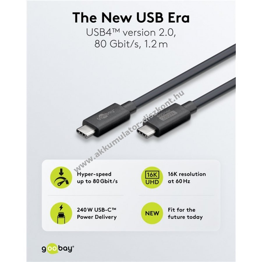 Goobay USB-C kábel USB4 verzió 2.0 1,2m 240W 5A 80Gbit/s 16K 60Hz Power Delivery