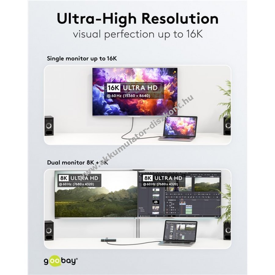 Nagy felbontású HDR10 támogatásával ideális HD videók streameléséhez külső monitorokra, tévékre vagy projektorokra.