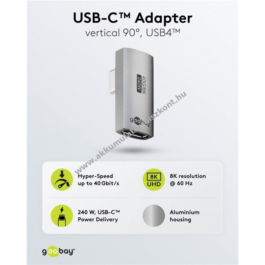 Az L alakú USB-C csatlakozó 90 fokos elforgatása helytakarékos kábelvezetést tesz lehetővé közvetlenül az eszköz mellett és csökkenti a kábel törését