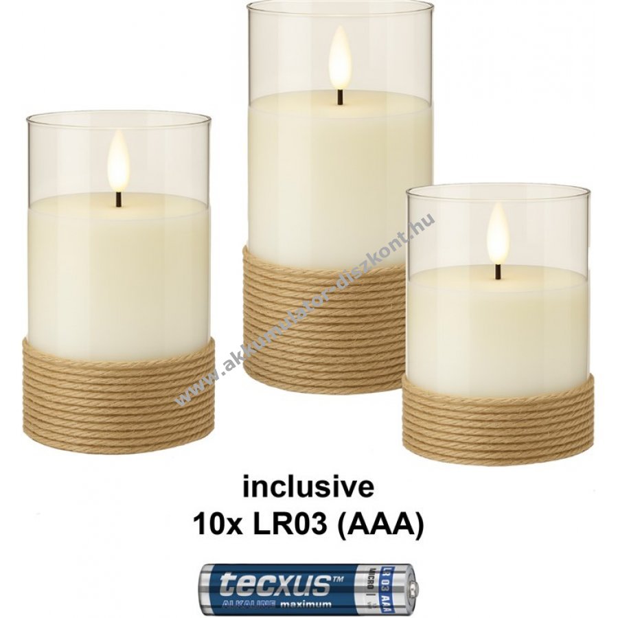 Minden gyertya 3x AAA (mikroelem) elemmel működik.