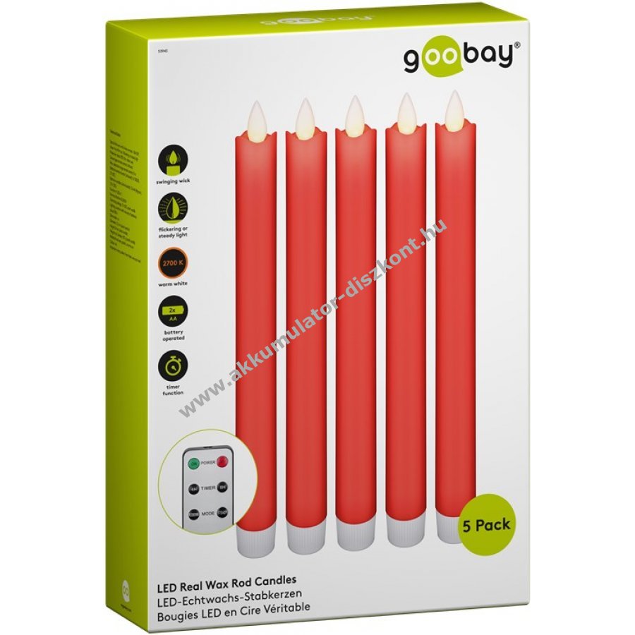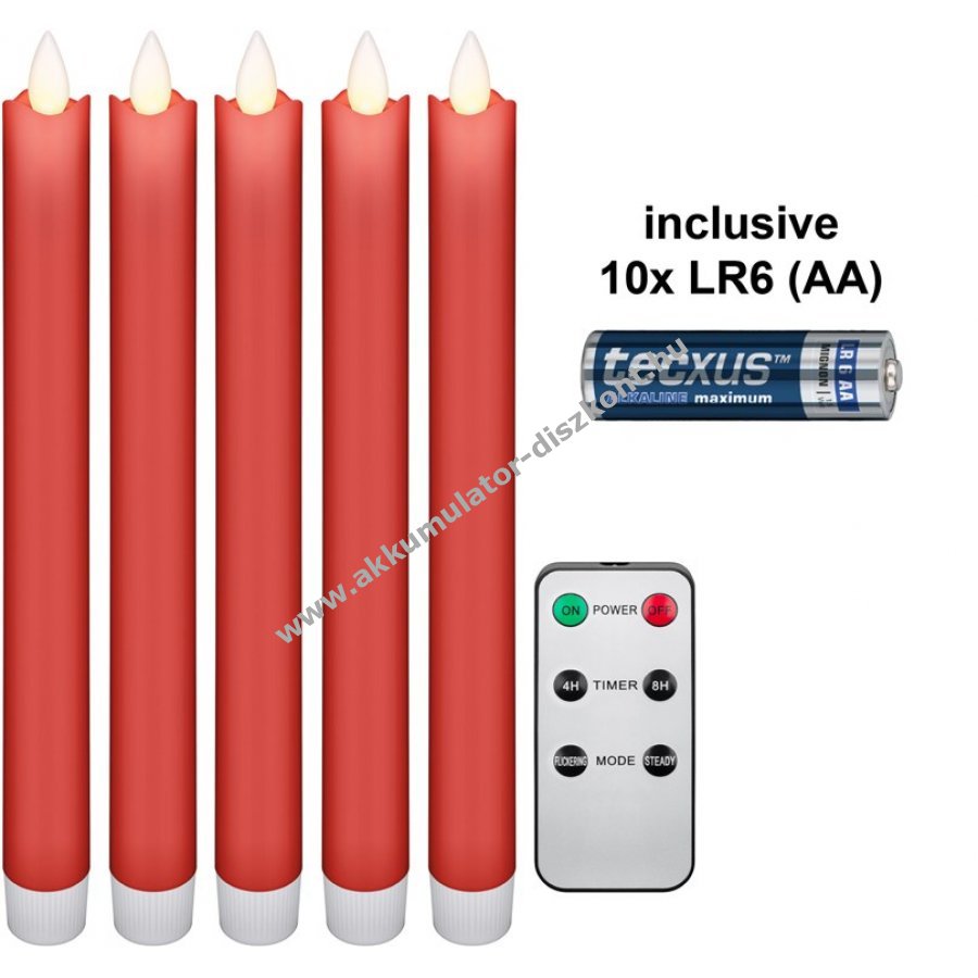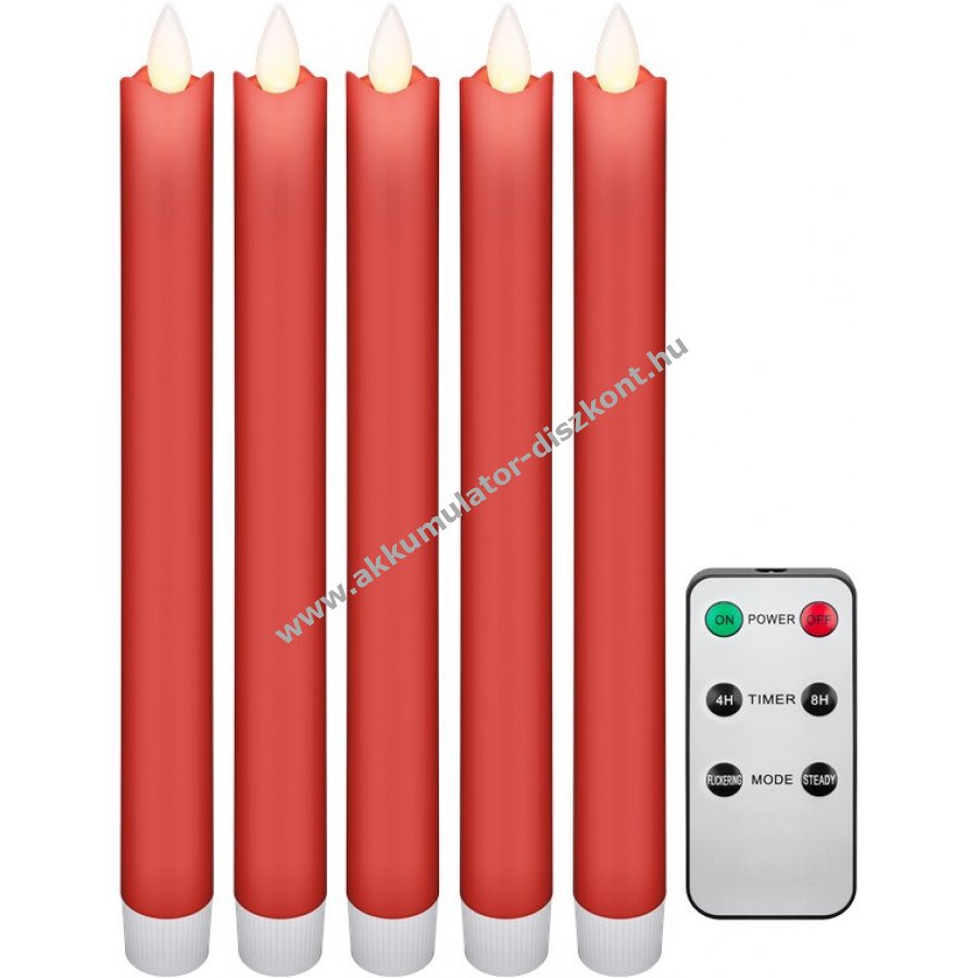 5 db piros LED gyertya 2,1 x 24 cm méretben