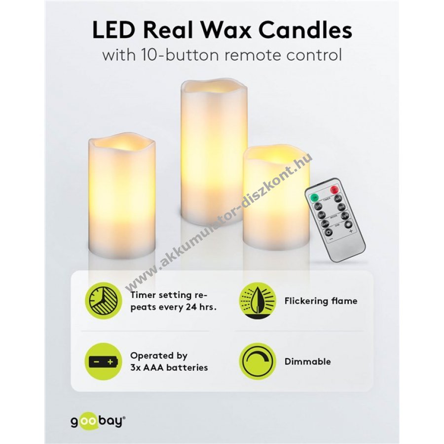 Minden gyertya 3x AAA (mikroelem) elemmel működik (elemek nélkül).