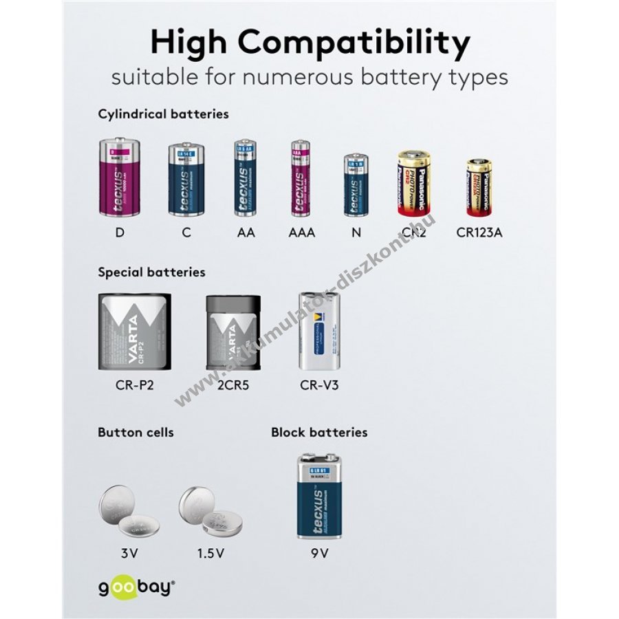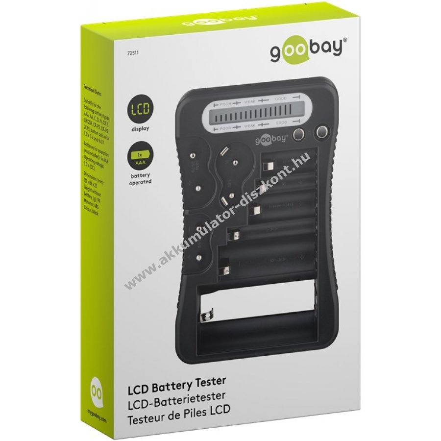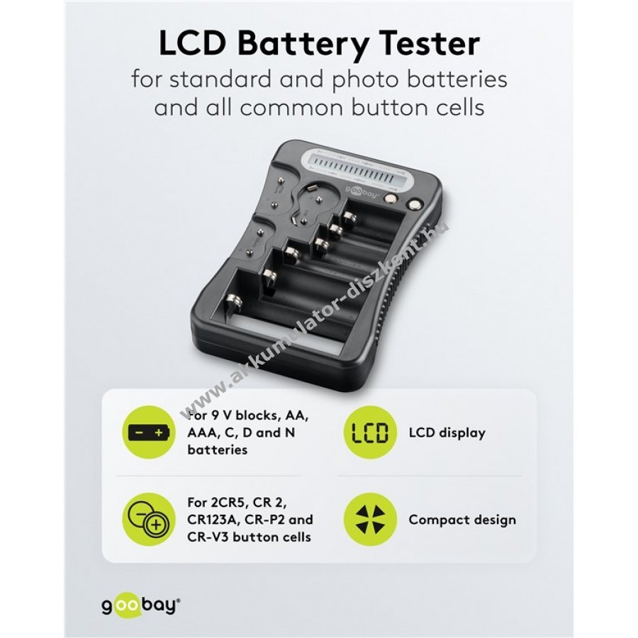 Goobay LCD elemtesztelő standard és fotóelemekhez, gombcellákhoz