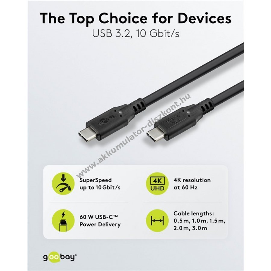 Goobay USB-C kábel 3m 60 W 3 A 10 Gbit/s USB 3.2 Power Delivery
