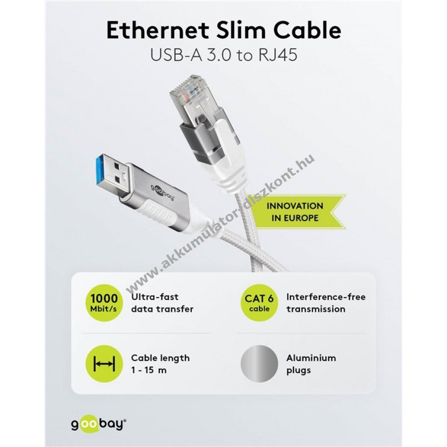 Goobay Ethernet kábel USB-A 3.0 - RJ45 Slim 7,5m CAT6