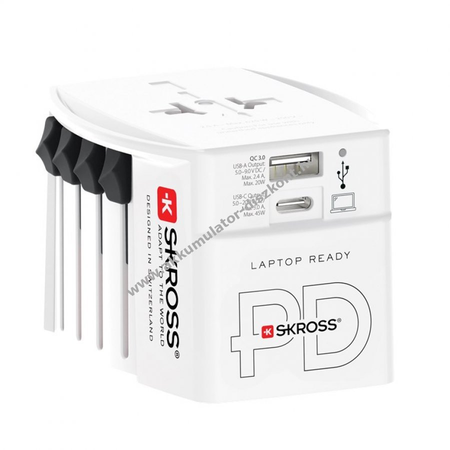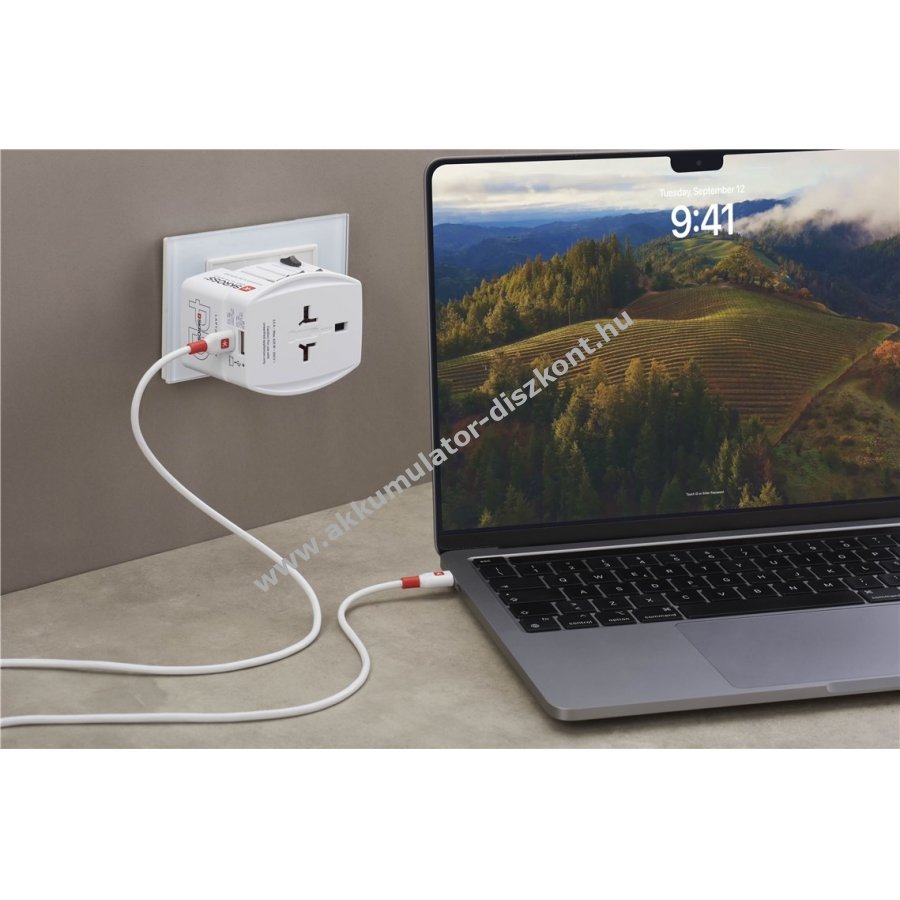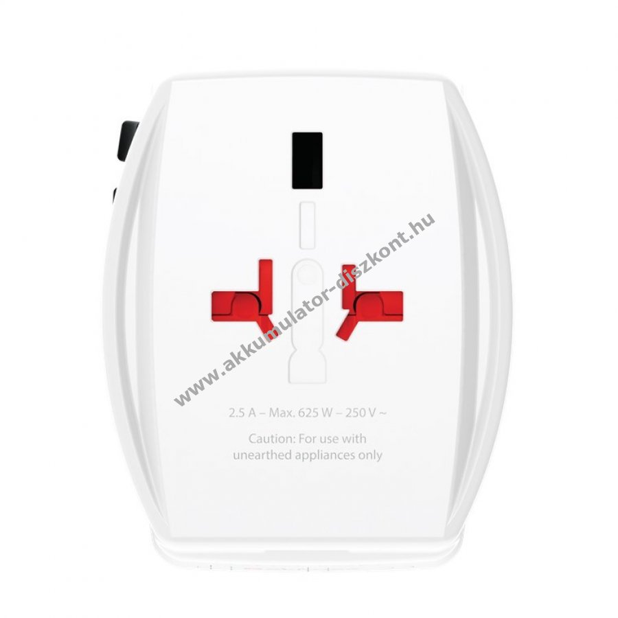 Kompakt univerzális utazóadapter USB-C és USB-A portokkal a világ több mint 220 országába. Teljes energiafüggetlenséget biztosít okostelefonok, kamerák, hordható eszközök és elektromos készülékek számára. 45 W-os gyorstöltés USB-C porton Power Delivery technológiával és egyszerre két USB eszköz töltése. Kompatibilis Európa (Euro C típus), UK (G típus), USA/Japán (A típus) és Ausztrália/Kína (I típus) hálózataival. Maximális áramerősség 2,5 A, bemeneti feszültség 100-250 V AC. Teljesítmény a bemeneti feszültségtől függően 250-625 W. Cserélhető biztosítékkal (T 2,5 A) és 1,6 m hosszú USB-C-USB-C töltőkábel mellékelve. Nem átalakítja a feszültséget, csak a megfelelő feszültségű készülékekhez használható.
