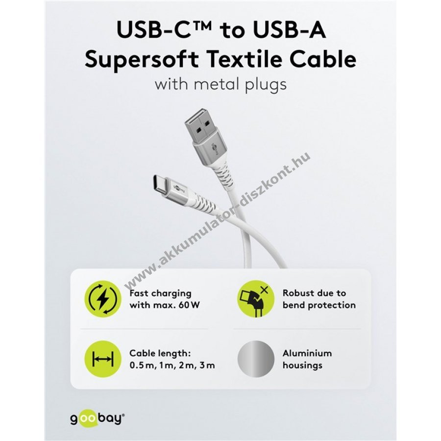 Goobay USB-C USB-A textilkábel 0,5m 15 W 3 A fehér