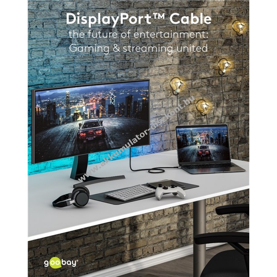 Goobay DisplayPort 2.0 2.1 kábel 54Gbit/s 8K 60Hz