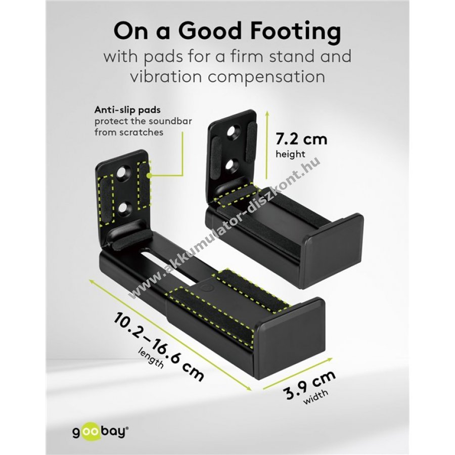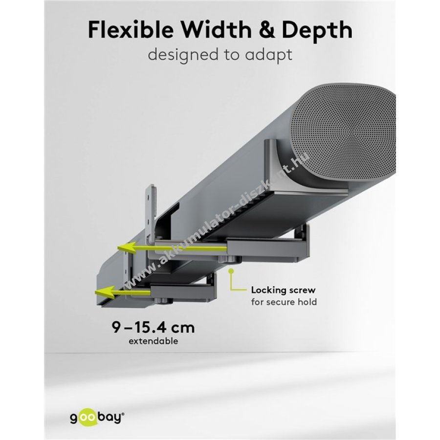 A tartó állítható és a legtöbb 90-154 mm mélységű soundbarhoz alkalmas például Samsung LG Sonos Sennheiser Teufel vagy JBL márkákhoz