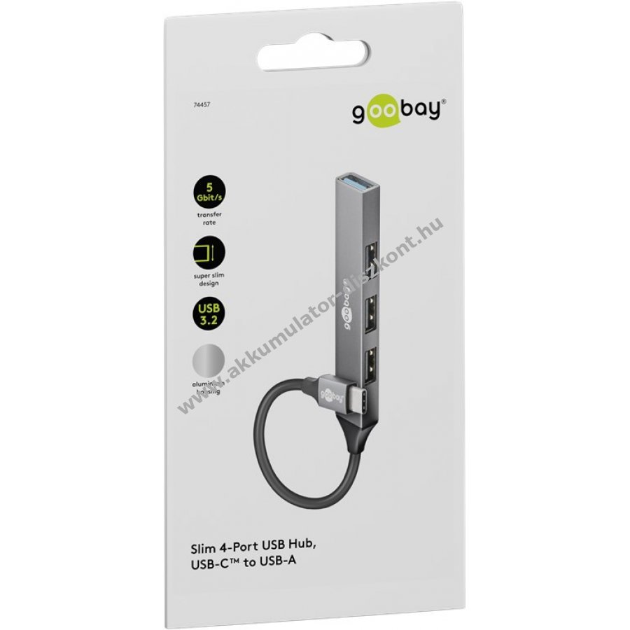 Goobay Slim 4-portos USB-C hub USB 3.2 USB-A csatlakozókkal