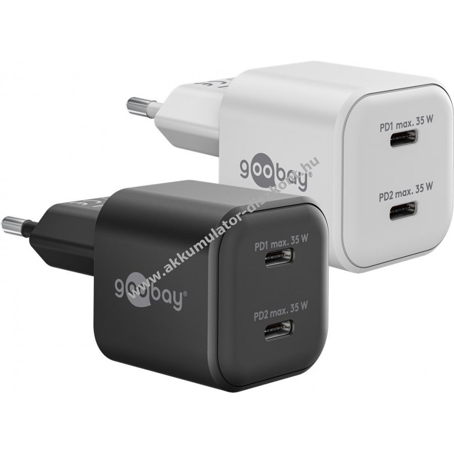 Goobay USB-C PD GaN gyorstöltő 35W 2x USB-C csatlakozó fekete