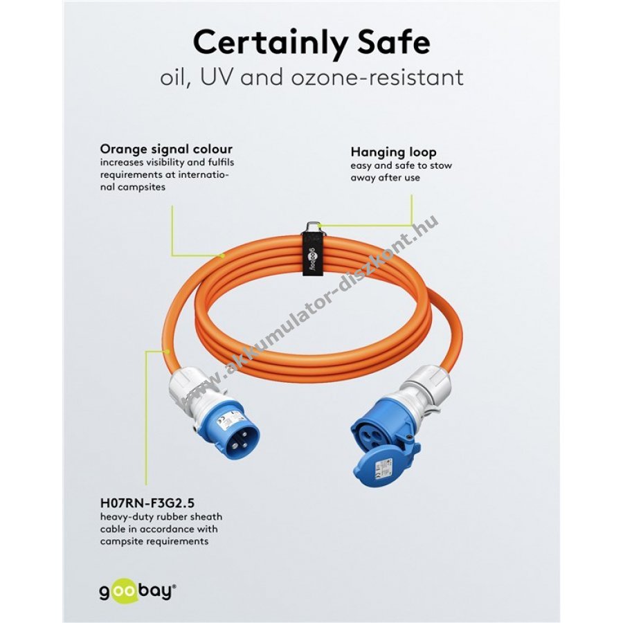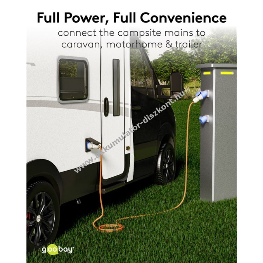 Teljes rugalmasság a rövid CEE kempingkábelek meghosszabbításához távoli konnektorokhoz