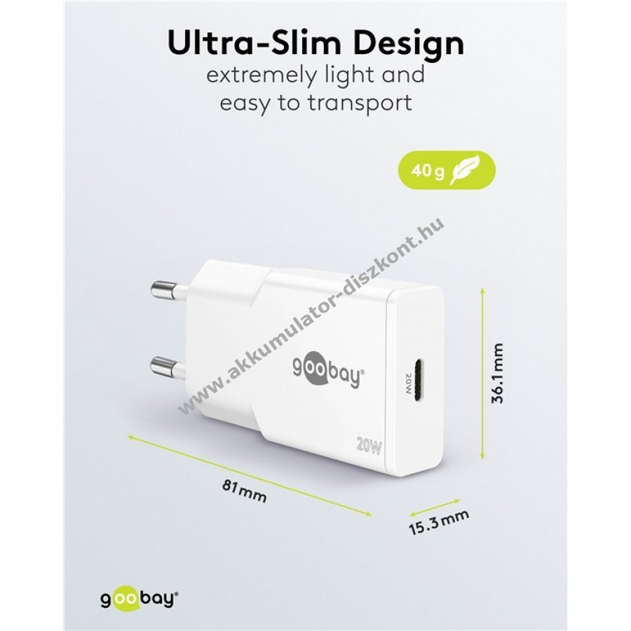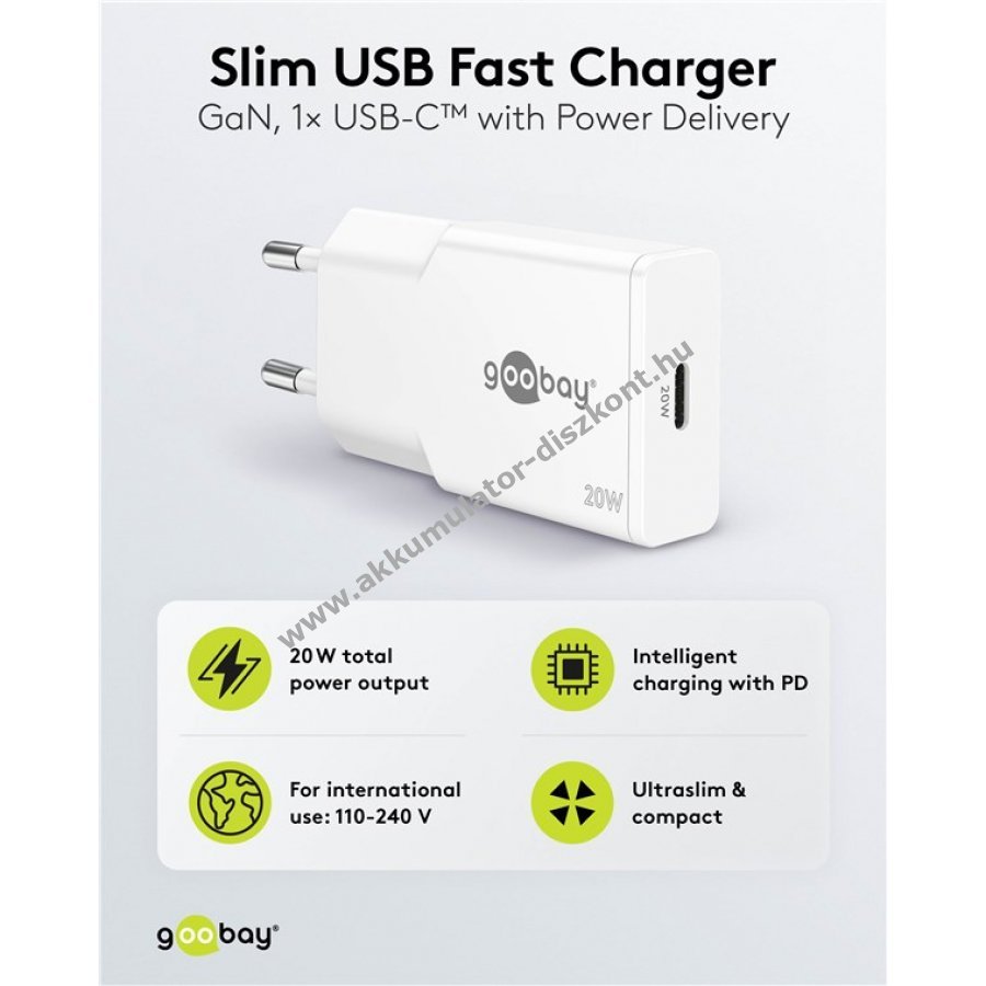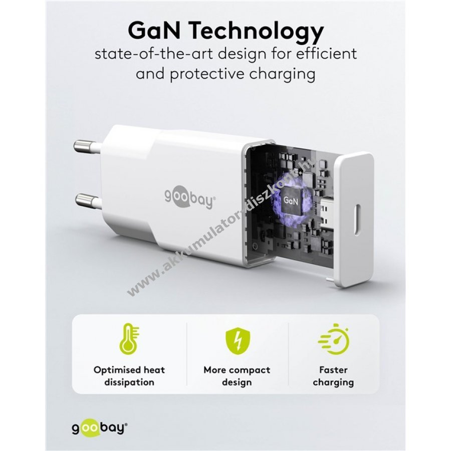 Goobay USB-C PD GaN gyorstöltő 20W 1x USB-C csatlakozó fehér