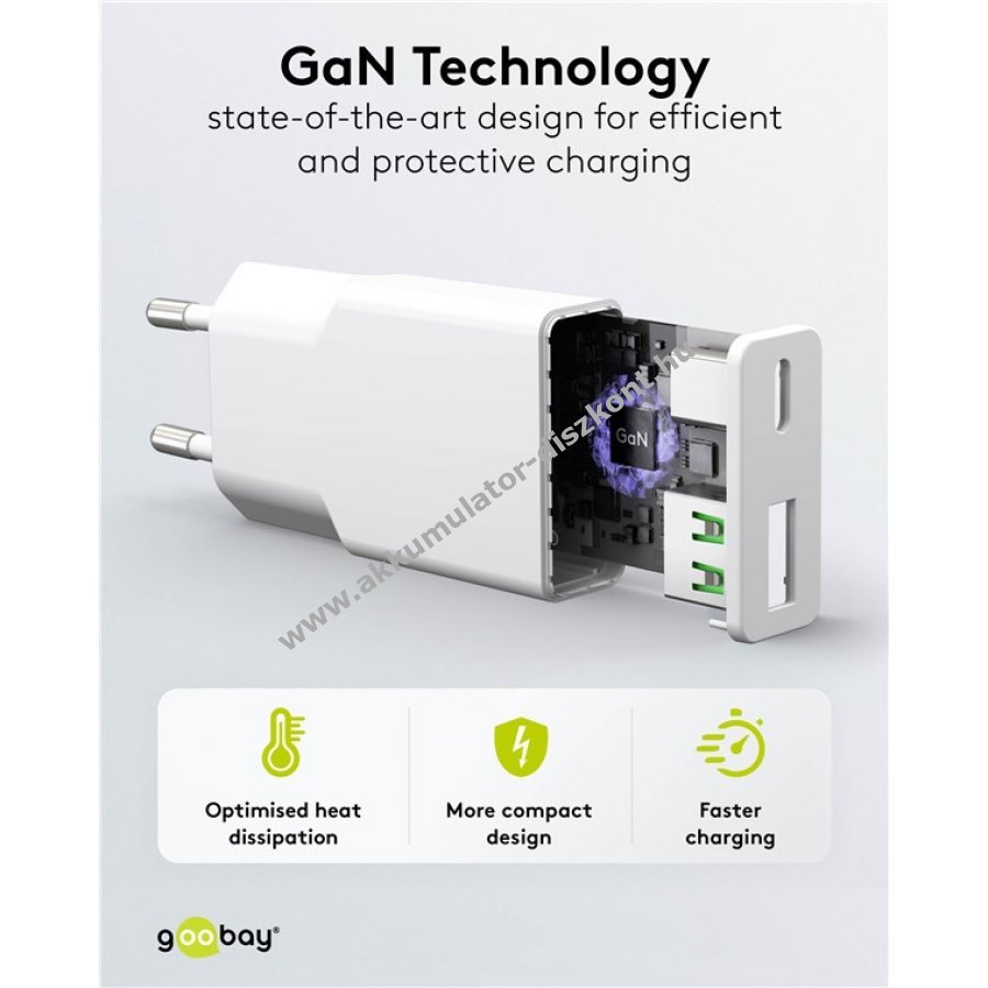 A GaN technológiának köszönhetően gyorsabb és hatékonyabb töltést biztosít kisebb méret mellett.