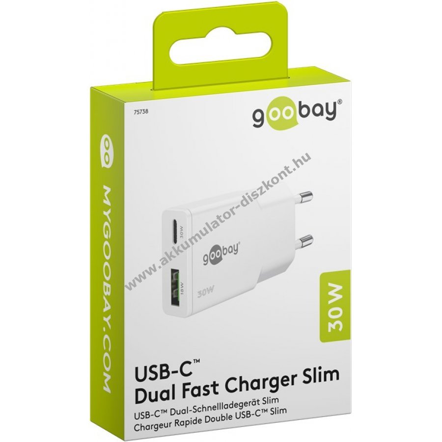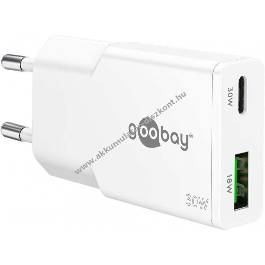 Goobay USB-C PD GaN 30W gyors töltő 1x USB-C 1x USB-A fehér