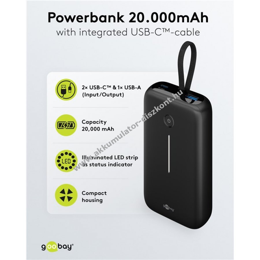Goobay Powerbank 20000mAh USB-C kábellel 30W gyorstöltéssel - A készlet erejéig