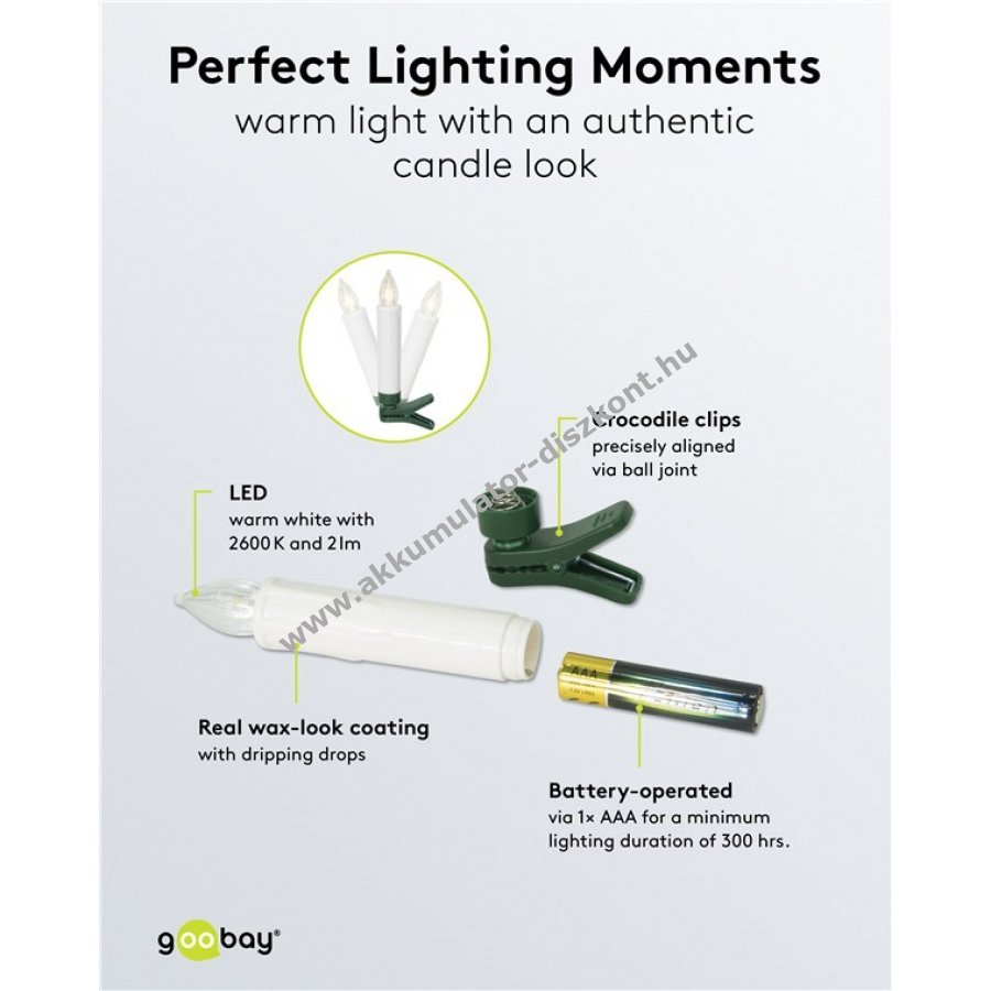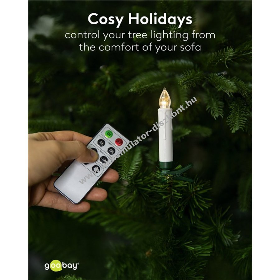 Goobay vezeték nélküli LED karácsonyfa gyertyák 10db csipeszes távirányítós időzítővel melegfehér