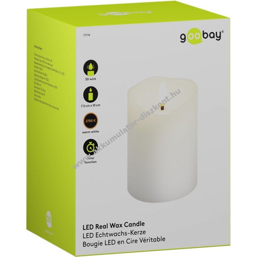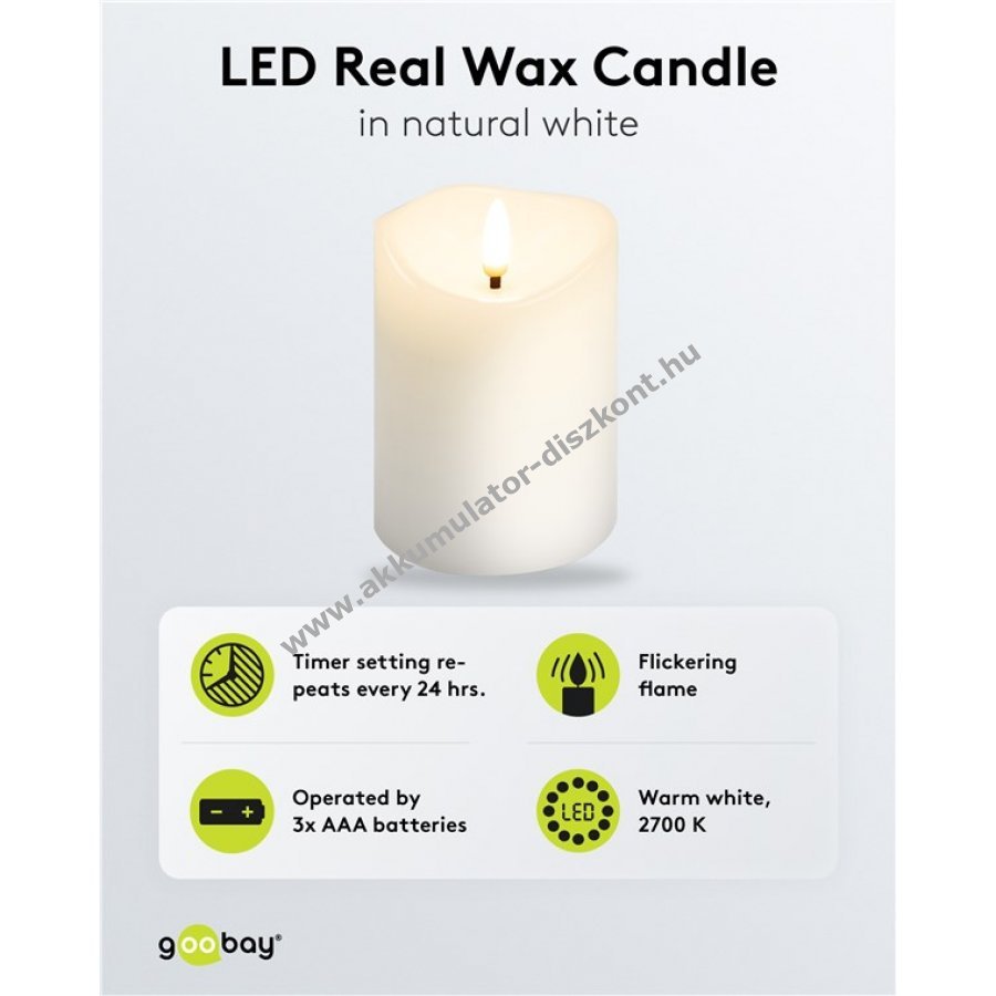 - Valódi viaszborítású, meleg, vibráló lánghatású elektromos gyertya