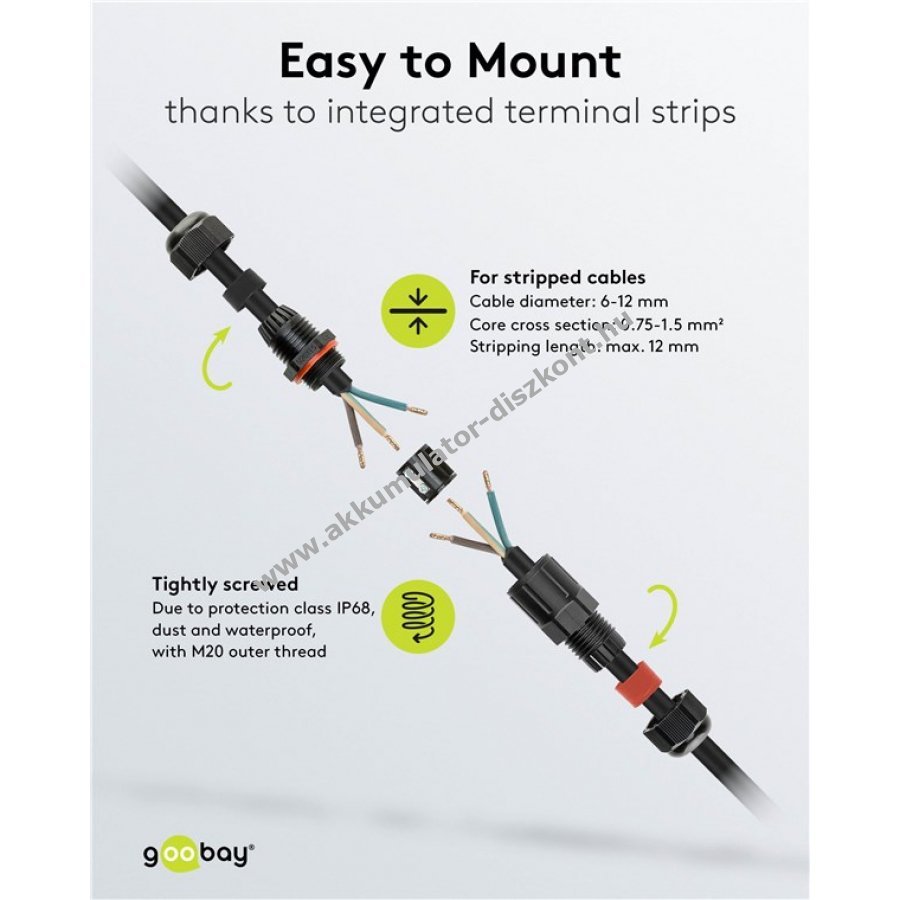 Biztonságos egyszerű megoldás két- vagy háromeres kábelek összekötésére hosszabbítására vagy javítására