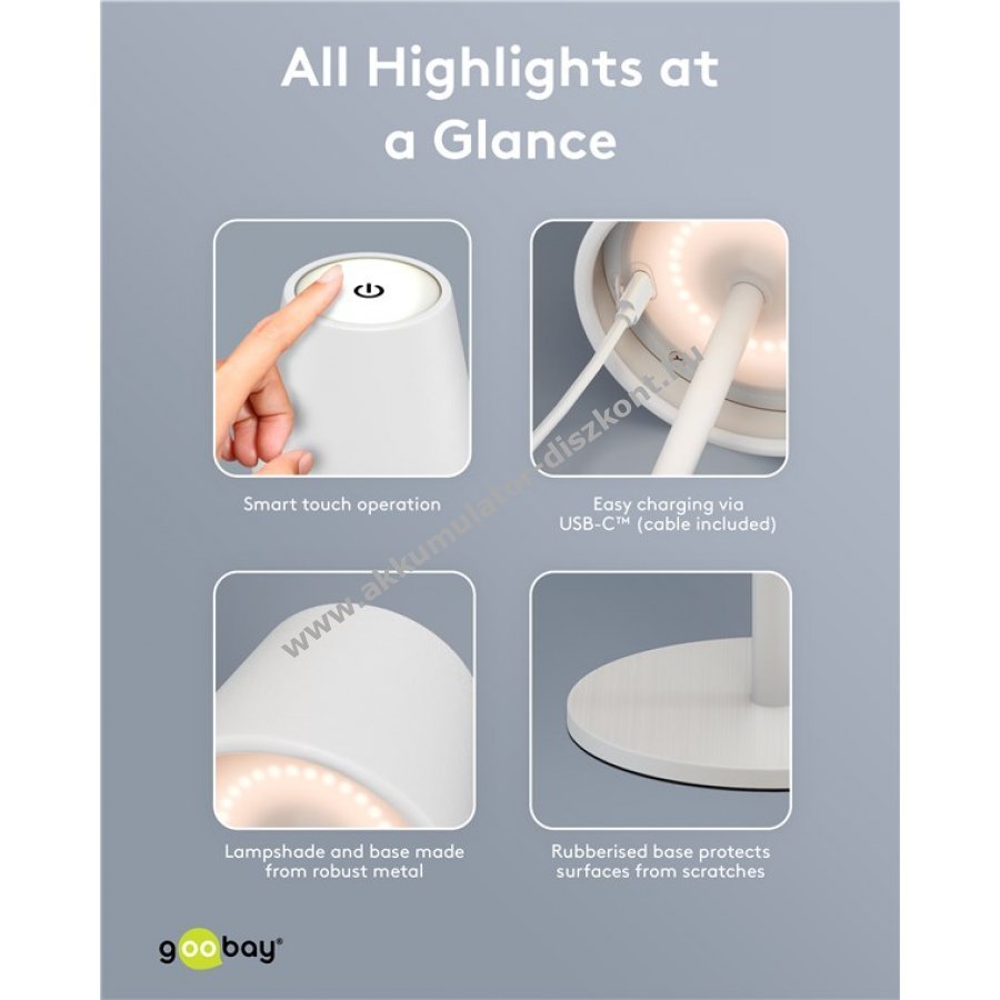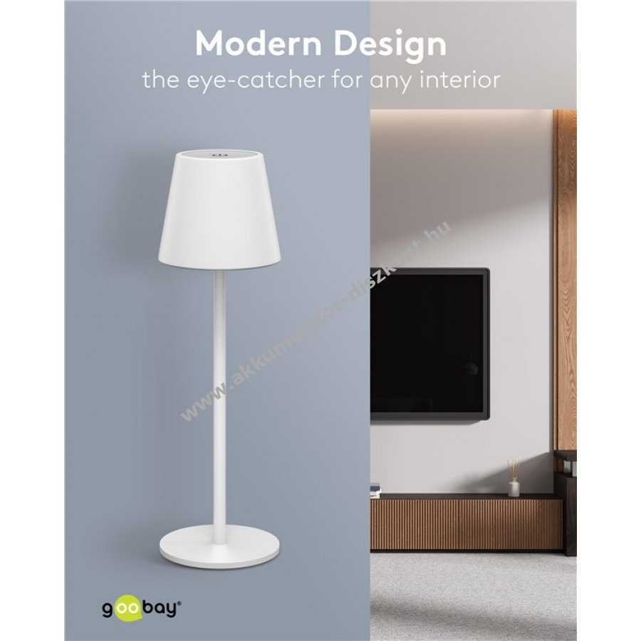 Goobay vezeték nélküli LED asztali lámpa M méret 37cm fehér érintésvezérlés