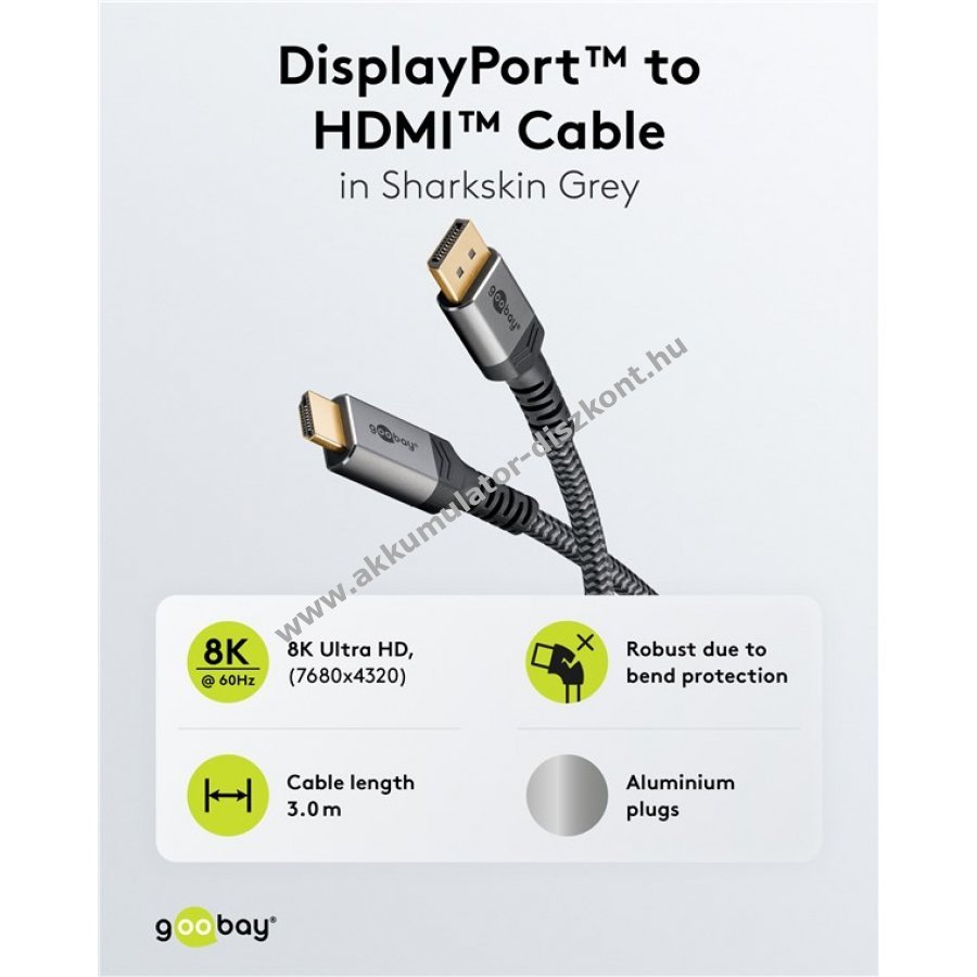 Goobay DisplayPort HDMI kábel 8K 60 Hz fém csatlakozóval