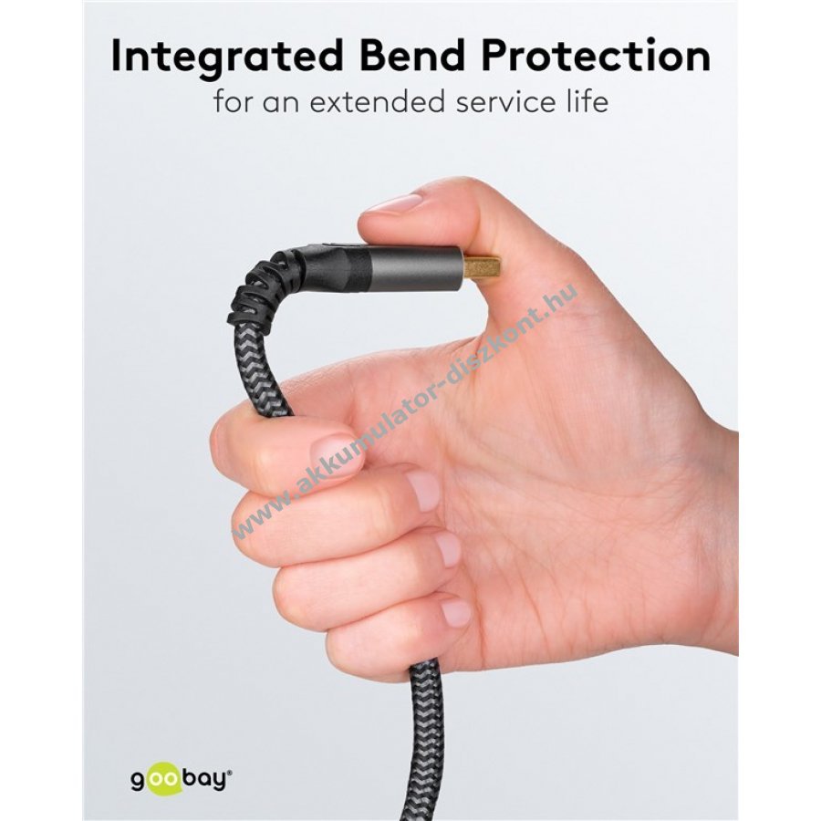 A Goobay Plus sorozat vékony fém kivitelben Sharkskin Grey színben. Kényelmes megoldás DisplayPort forrás csatlakoztatására HDMI csatlakozós televízióhoz vagy monitorhoz akár 8K felbontásig. Passzív kábel audio és video továbbítására laptopról, PC-ről vagy grafikus kártyáról HDMI eszközre. Támogatja a DisplayPort 2.0/2.1 és HDMI Ultra HD szabványokat 8K 50/60 Hz felbontással és 48 Gbit/s adatátvitellel. A kábel egyirányú, csak DisplayPort forrásról HDMI célra használható. Rugalmas prémium kábel vékony fém csatlakozókkal, törésvédelemmel és színben harmonizáló textilkábellel. A fonott textilborítás kellemes tapintású és kíméletes a felületekhez. Az aranyozott csatlakozók korrózióállóak és tartósak.