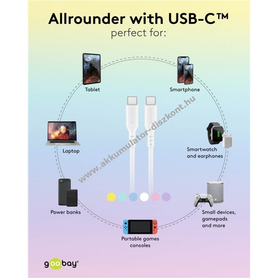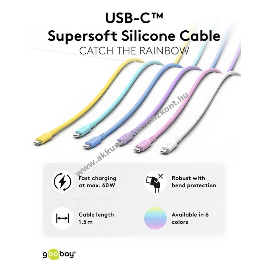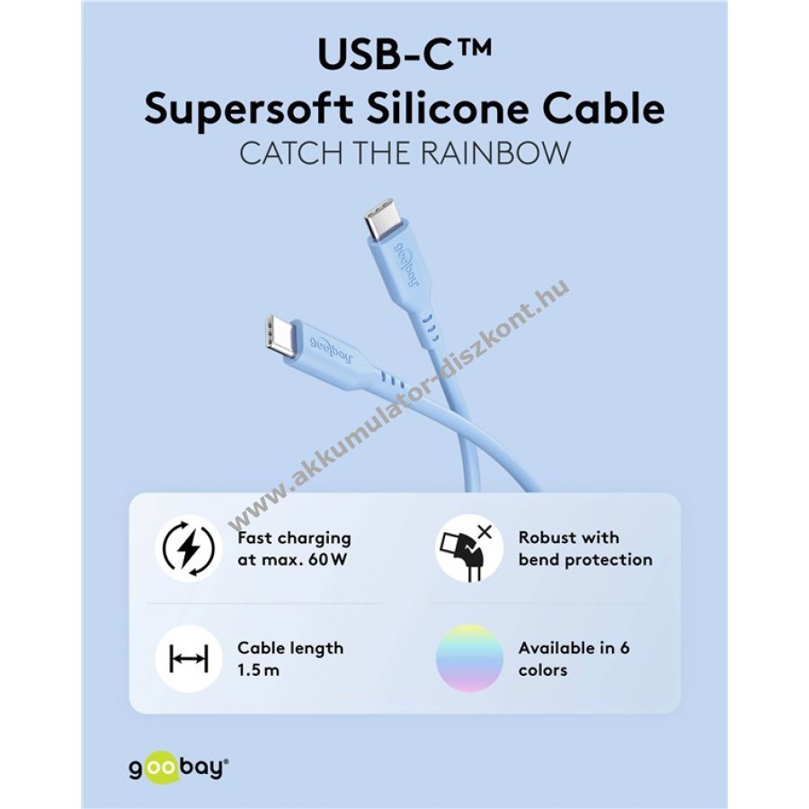 Puha és tartós szilikon borítású USB-C kábel gyors töltéshez és adatátvitelhez. Ideális munkahelyre vagy útközbeni használatra. 60 W teljesítmény és 3 A áramerősség támogatásával Power Delivery töltést tesz lehetővé. 480 Mbit/s sebességű adatátvitel USB 2.0 szabvány szerint. A sima felület megkönnyíti a tisztítást. A rugalmas szilikon külső megakadályozza a kábel összegubancolódását és csökkenti a törés kockázatát. Kompatibilis okostelefonokkal, laptopokkal, táblagépekkel, drónokkal és játékkonzolokkal. A csomag tartalmaz szilikon kábelrögzítőt a rendezettség érdekében.
