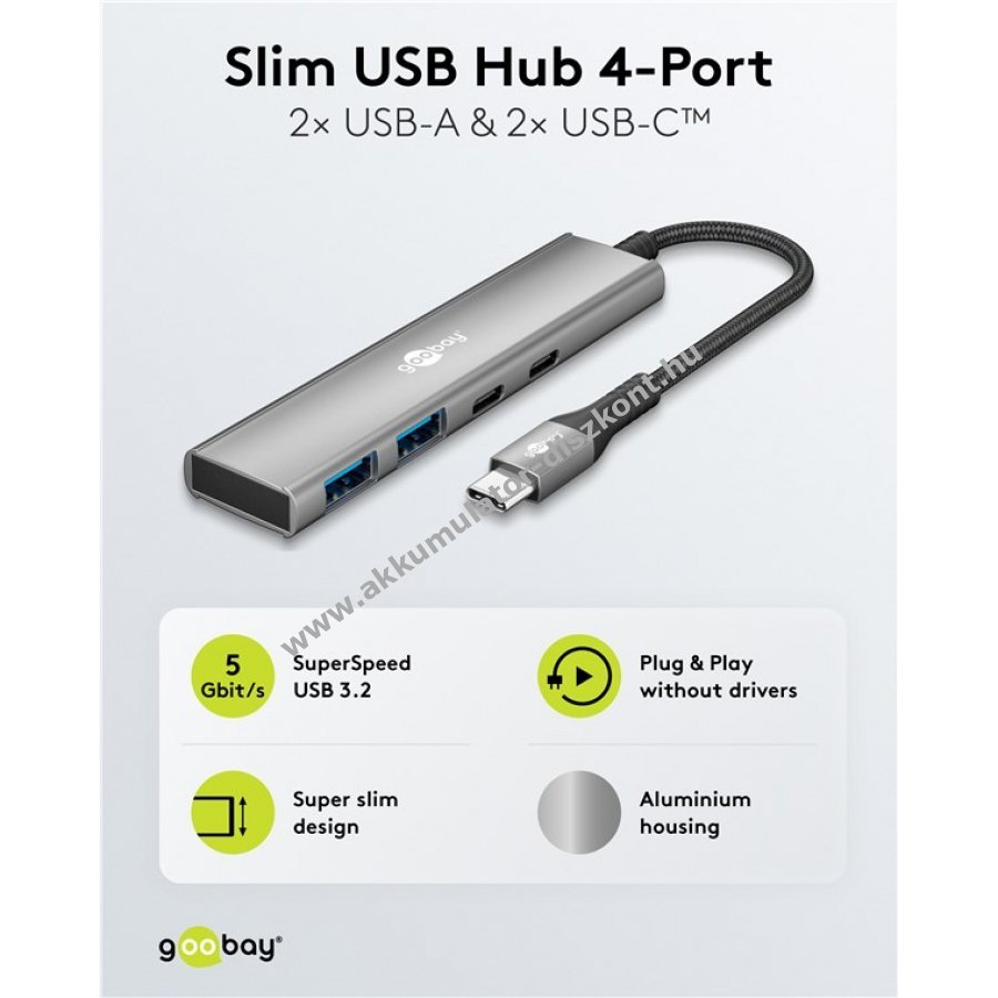 Az adapter két USB-C és két USB-A csatlakozót biztosít egy USB-C portból és akár 5 Gbit/s adatátvitelt kínál.