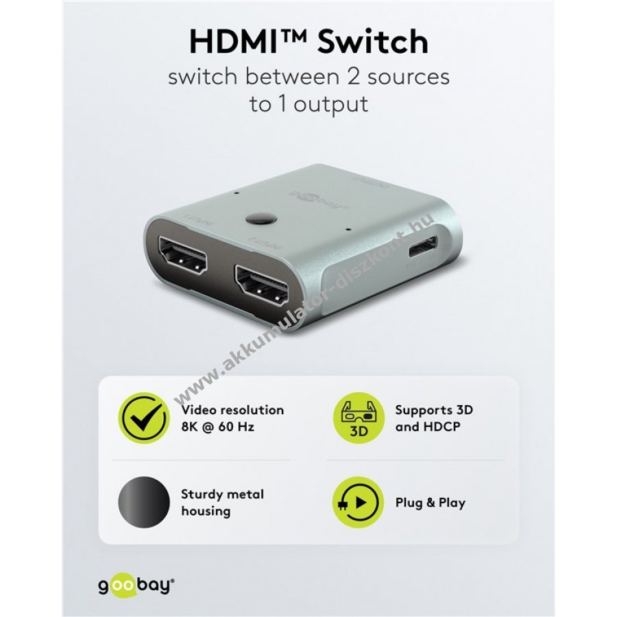 Két HDMI forrás egyszerű csatlakoztatása egy kijelzőhöz 8K 60Hz támogatással.