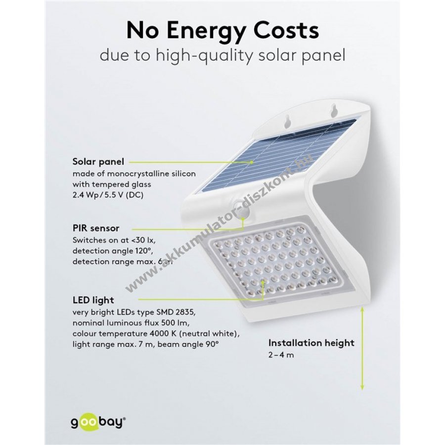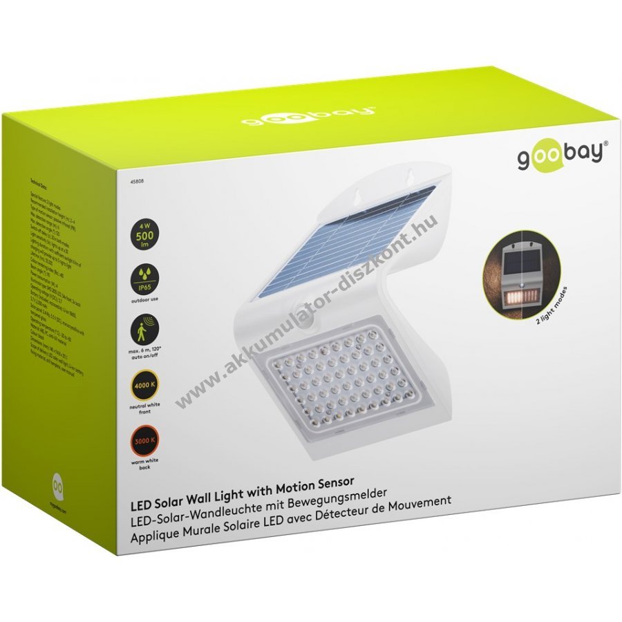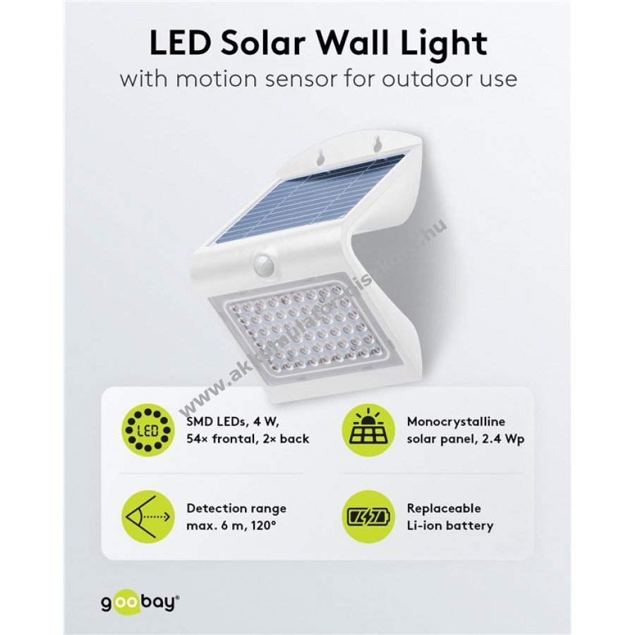Goobay LED napelemes fali lámpa mozgásérzékelővel 4W 4000K IP65 cserélhető Akkumulátor