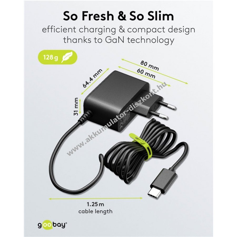 Kompakt Goobay USB-C tápegység, 27W teljesítmény és GaN-technológia, kifejezetten a Raspberry Pi 5 magasabb energiaigényéhez kompatibilis a Raspberry Pi 4-gyel is.
